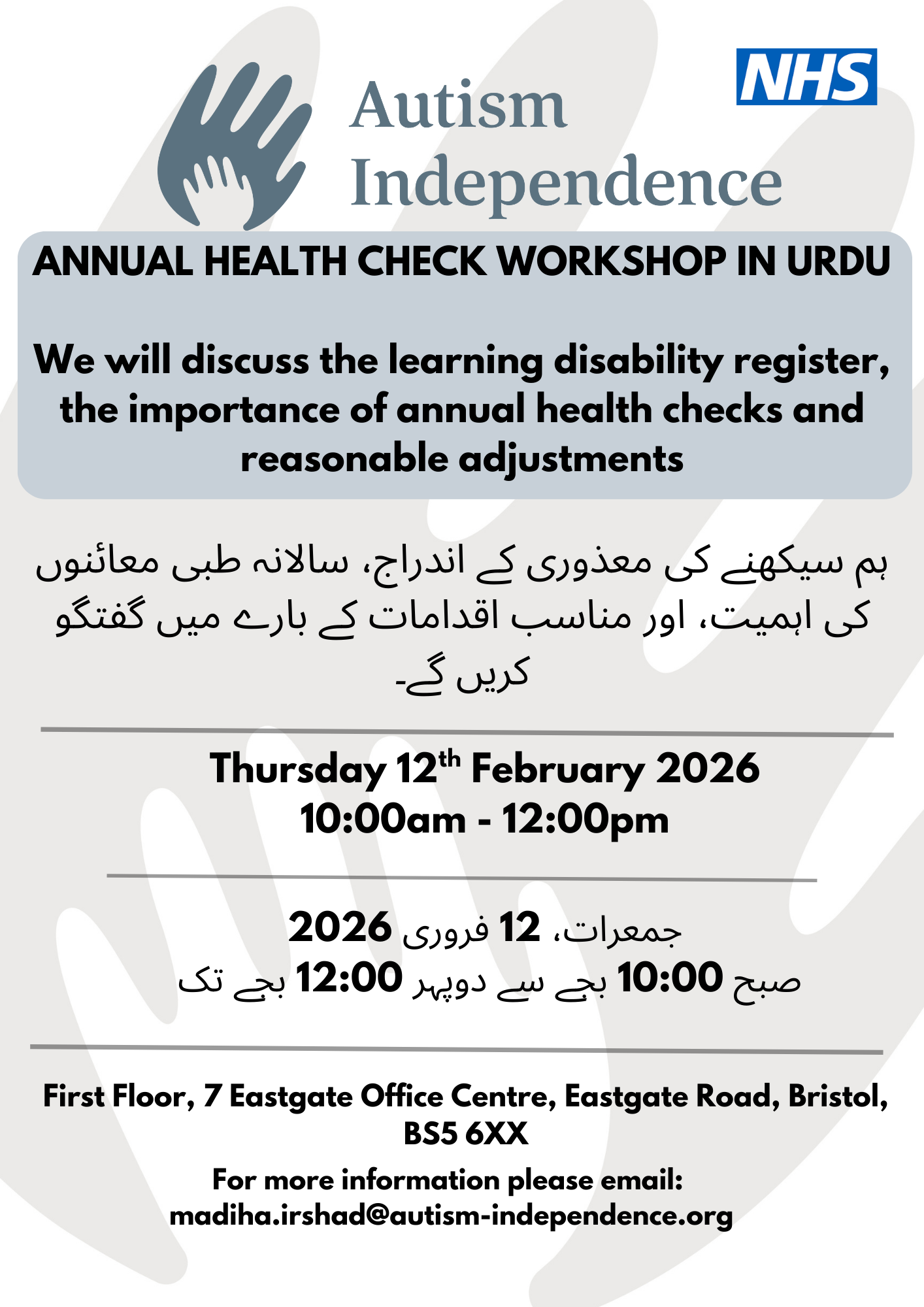 We are inviting families to find out more about Annual Health Checks for people with a learning disability. This informative session, delivered in Urdu by our dedicated NHS Healthcare Navigator Madiha, will cover the Learning Disability Register, the importance of Annual Health Checks, and…