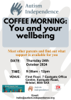 Join us on Thursday 24th October for a coffee morning to find out information on how to support your wellbeing.